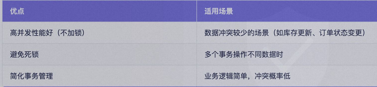 它适用于读多写少或冲突概率低的场景,能有效提高并发性能,但需要业务层配合实现冲突处理逻辑。