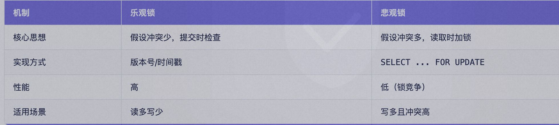 如果version已经被其他事务修改为6,则更新失败(影响行数为0),此时需要抛出异常或重试。