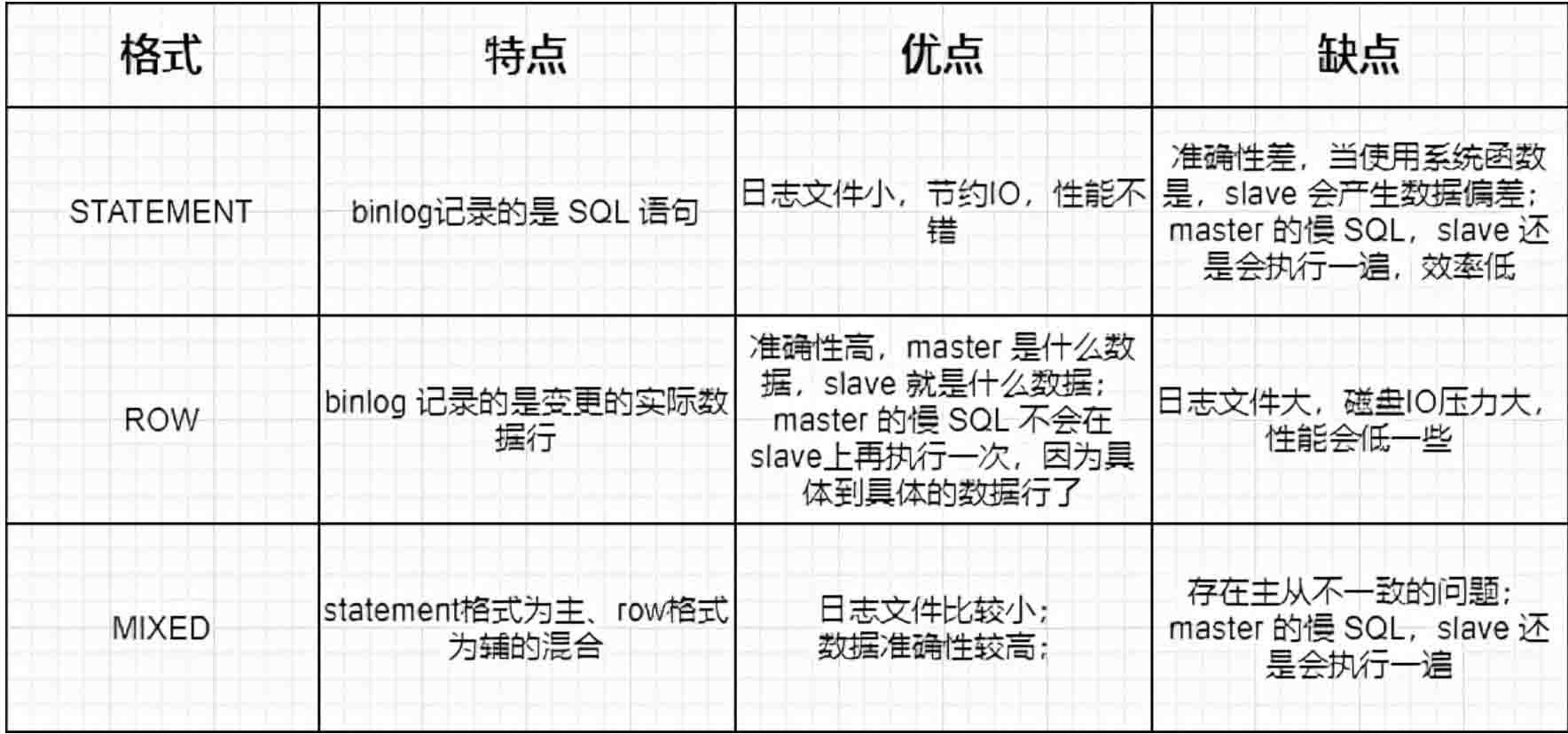 在MySQL 5.7.7之前,默认的格式是STATEMENT,MySQL 5.7.7之后,默认值是ROW。日志格式通过binlog-format指定。