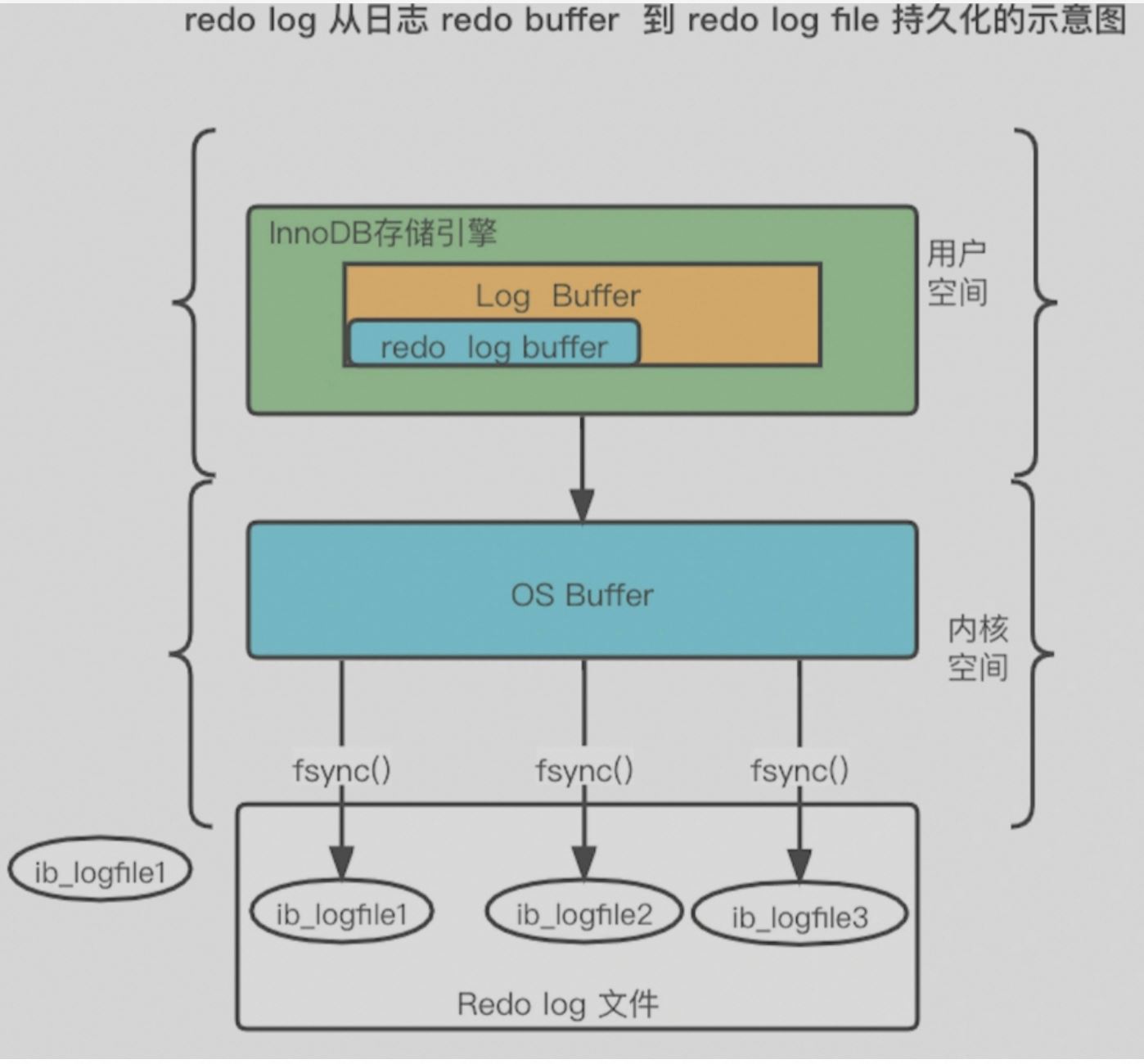因此,redo log buffer写入redo logfile实际上是先写入OS Buffer,然后再通过系统调用fsync()将其刷到redo log file中。