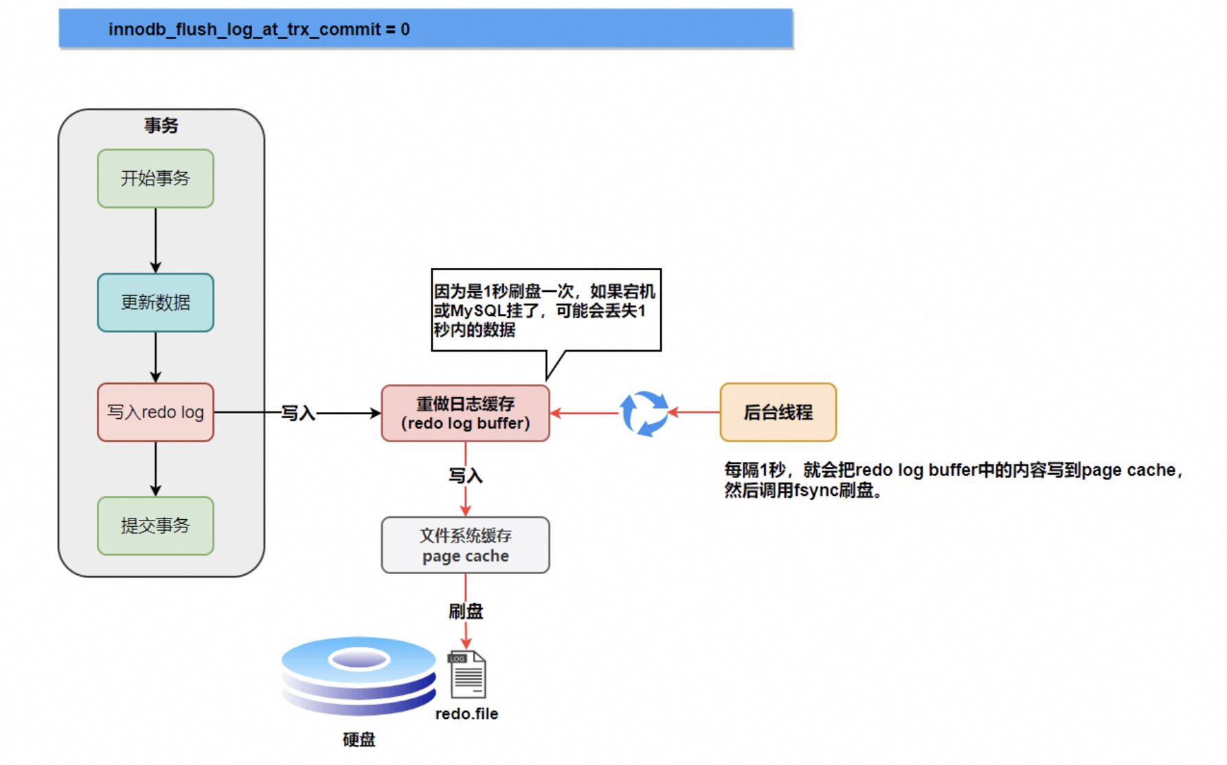 可以通过innodb_flush_log_at_trx_commit参数配置将redo log buffer写入redo log file的时机,