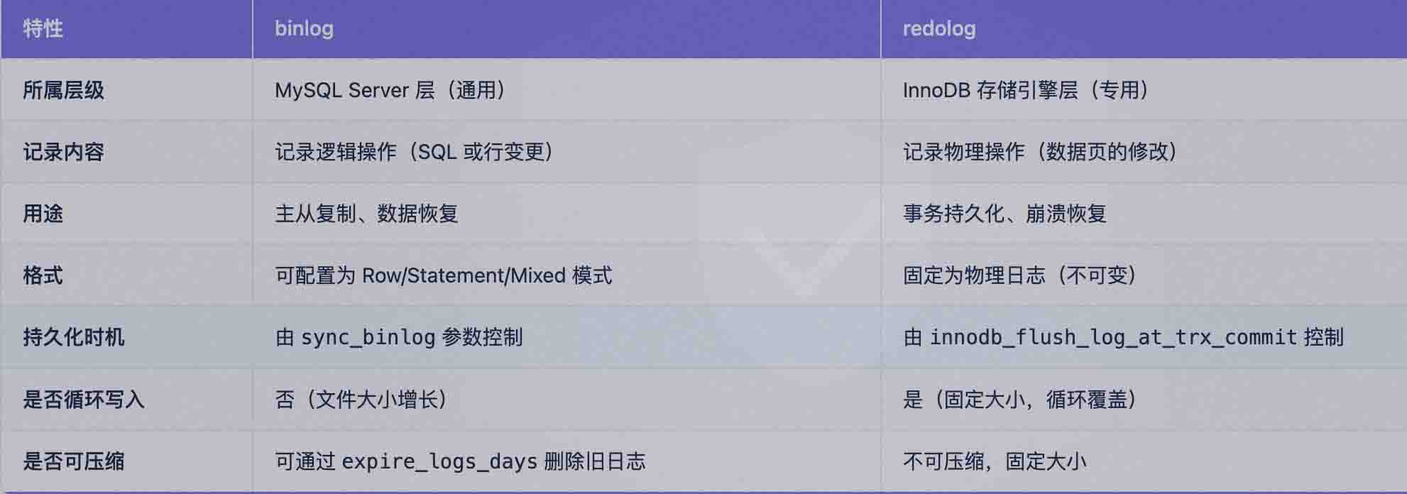 MySQL 中的binlog和redolog是两种核心日志机制,它们在数据库的数据持久化、主从复制和崩溃恢复中扮演关键角色。