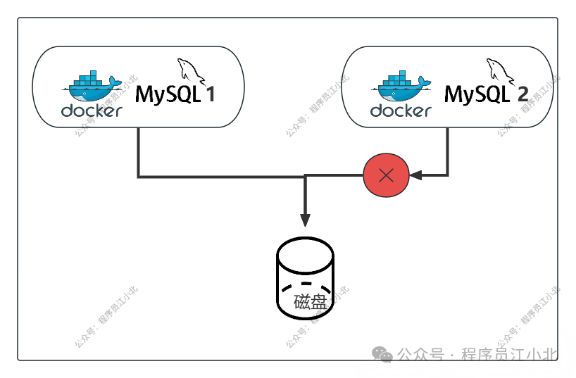 BUT!容器之间不能同时读写这个宿主目录。因为数据库的数据文件是“容器独占”的,两个实例不能共享一个数据源,否则数据就乱套了,直接崩。