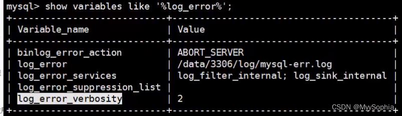 mysql> set global log_error_verbosity=3; 下一次登录生效。