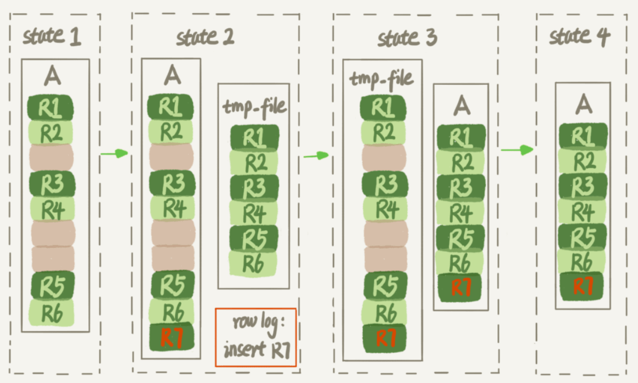 除了插入,由于更新可以看为删除+插入,也可能造成空洞。即,增删改都可能出现空洞。所以,如果能把这些空洞去掉,就能达到收缩表空间的目的。