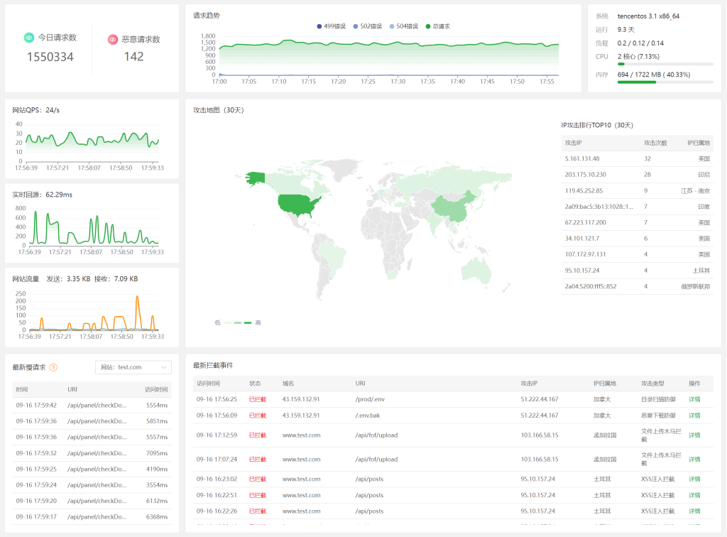 堡塔云WAF提供简单便捷的网站安全防护,需要一台独立的服务器来安装使用。