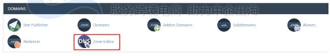 进入cPanel面板后台,您可以导航到Domains部分,选择Zone Editor区域编辑器。