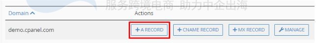 如果您想创建一个A记录,那么可点击Actions部分的+ A RECORD选项。